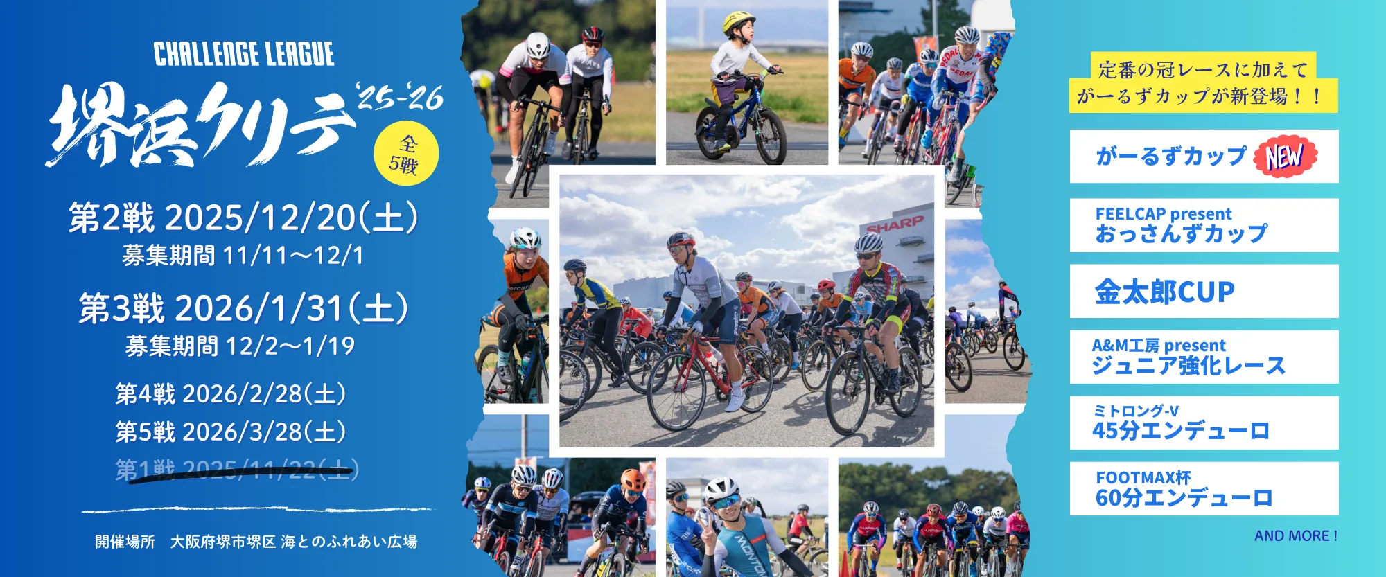 堺浜クリテ(全5戦)と、はりちゅうサイクルフェスタ(全2戦 ※12月、3月開催予定)の計7戦で2つのシリーズポイント戦を行い、最も多くポイントを獲得した選手を特別表彰します。