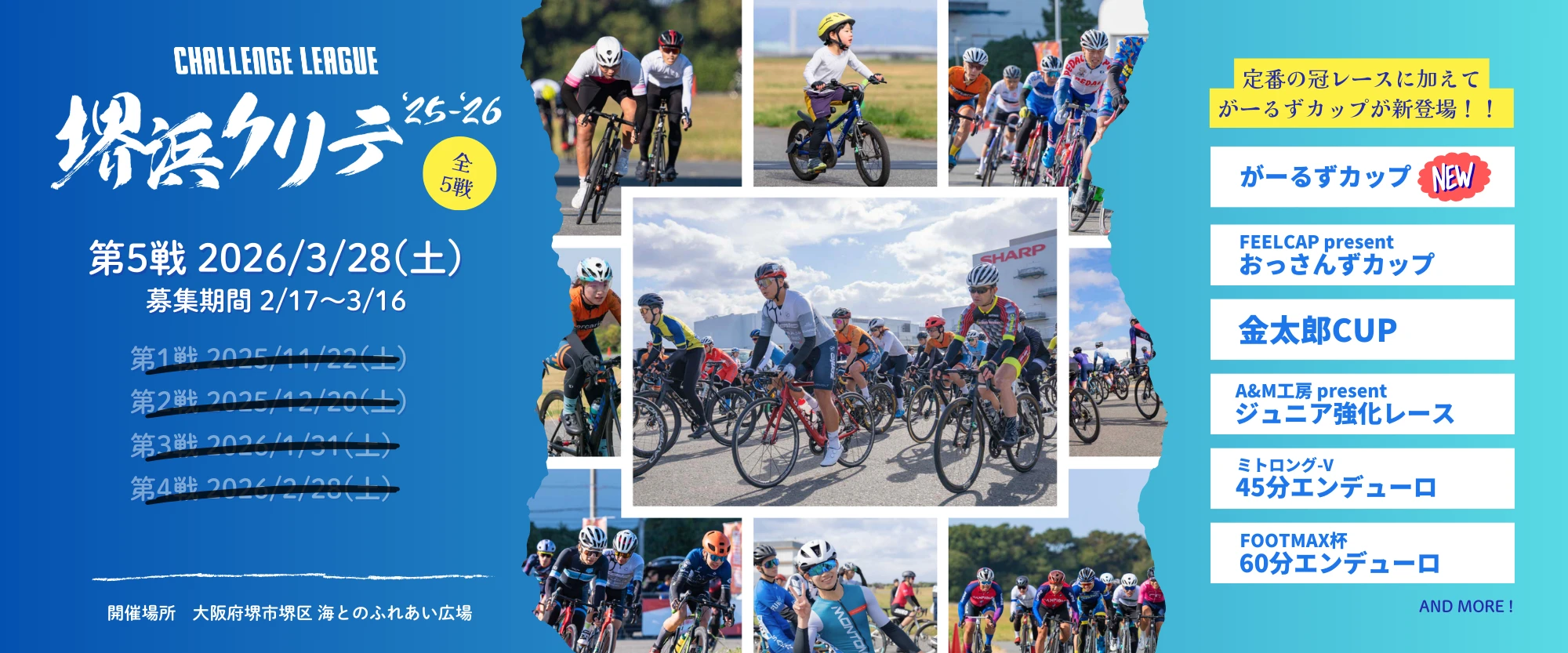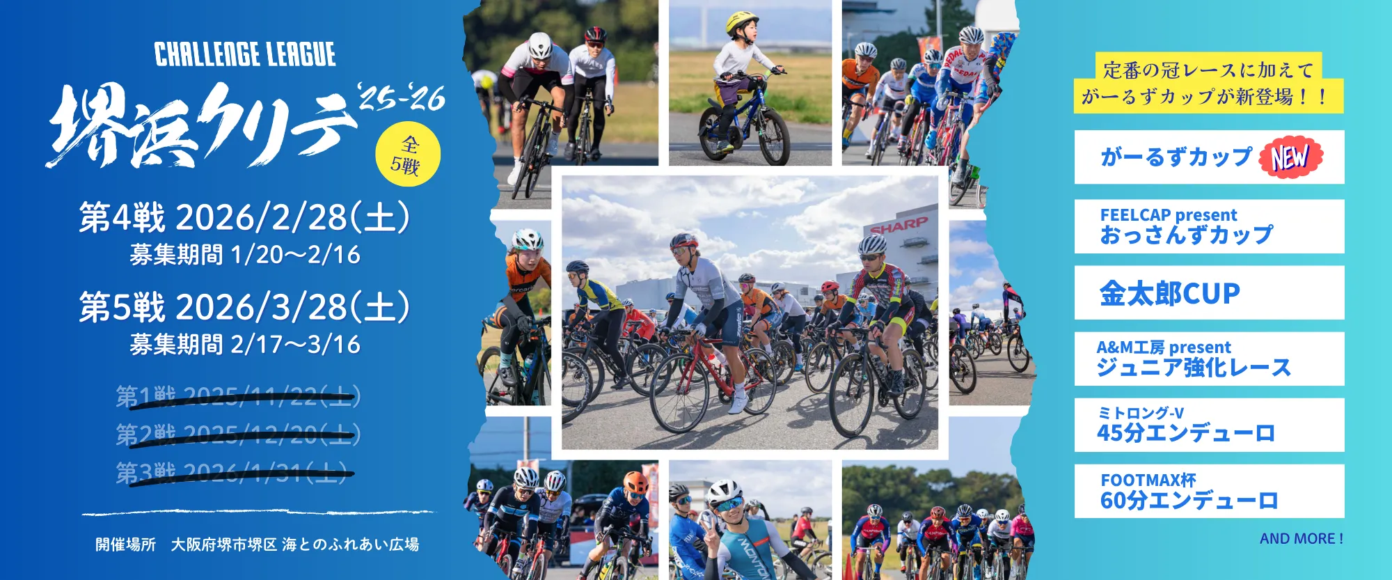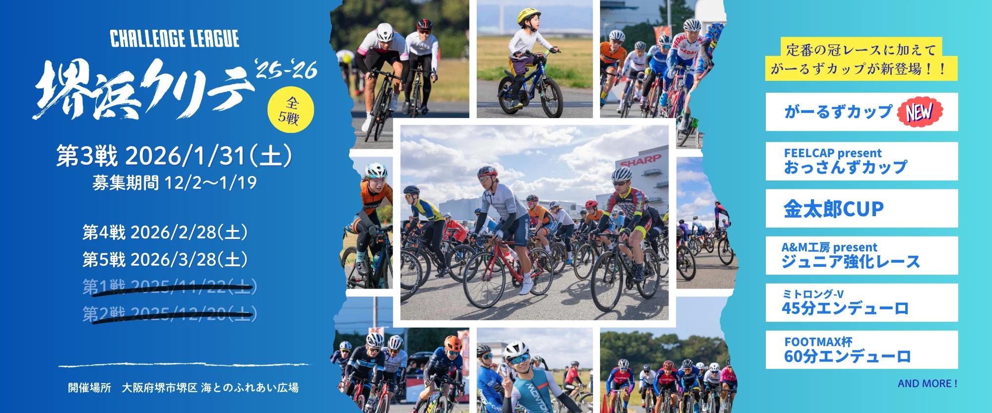 堺浜クリテ(全5戦)と、はりちゅうサイクルフェスタ(全2戦 ※12月、3月開催予定)の計7戦で2つのシリーズポイント戦を行い、最も多くポイントを獲得した選手を特別表彰します。